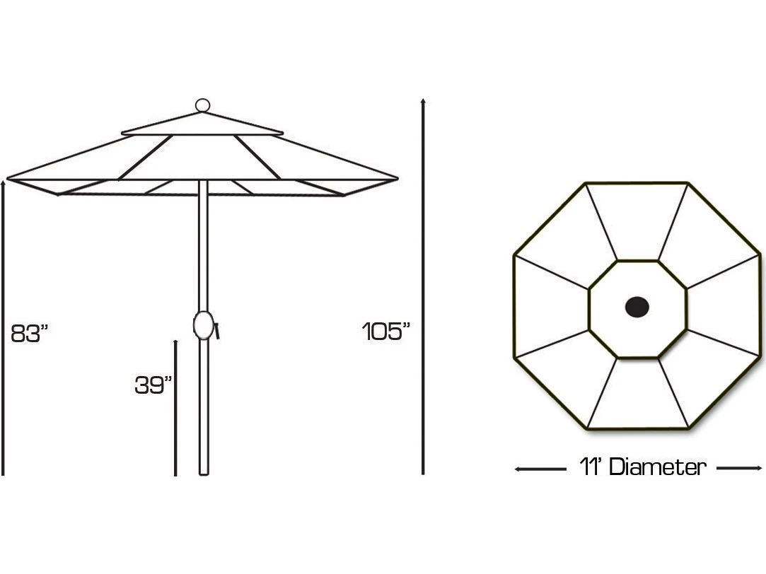 - Dimensions: 11′ Dia x 105”H