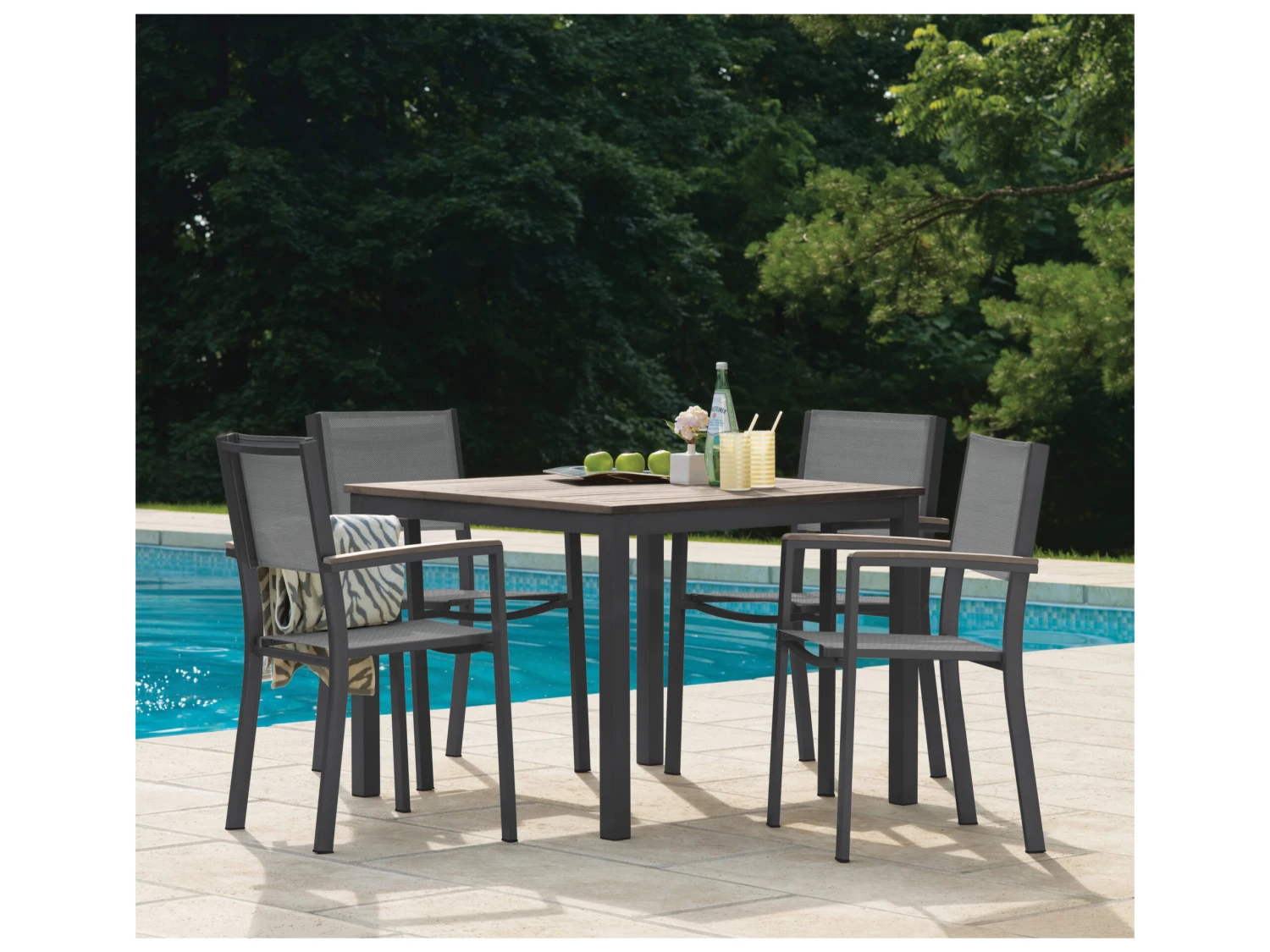 Product Care: POWDER-COATED ALUMINUM requires little maintenance, however regular cleaning is recommended to keep furniture looking new. Wash gently with a mild non-abrasive cleanser, rinse well and let dry. COMPOSITE SLING – To clean the sling material, scrub with a mild, non-foaming, commercial cleanser. Rinse well and air dry. TEKWOOD should be cleansed using a mild, non-abrasive cleanser and rinsed well. |