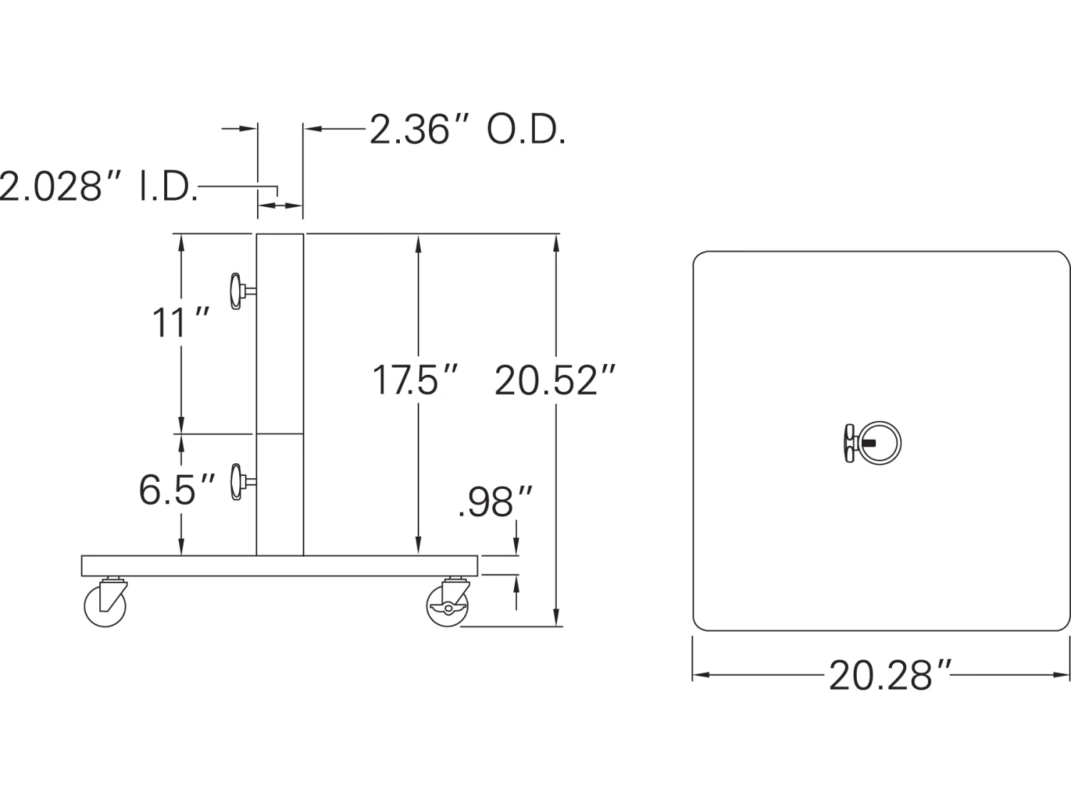 - Dimensions: 20.28” W x 20.28”D x 20.52”H