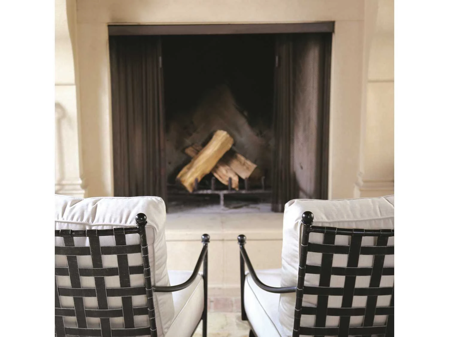 Sunset West Provence Wrought Iron Club Chair in Canvas Flax with Self Welt