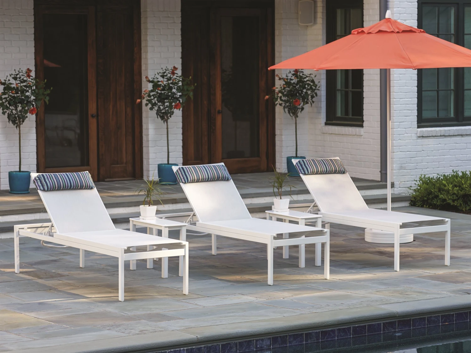 Telescope Casual Kendall Sling Aluminum Stacking High Bed Chaise Lounge