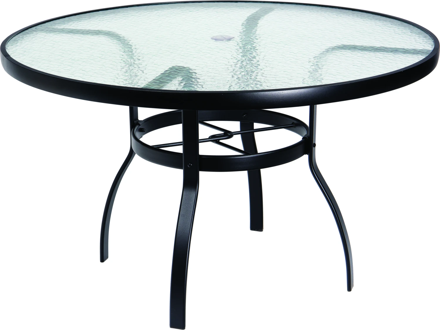 Woodard Aluminum Deluxe 48” Round Obscure Glass Top Table with Umbrella Hole